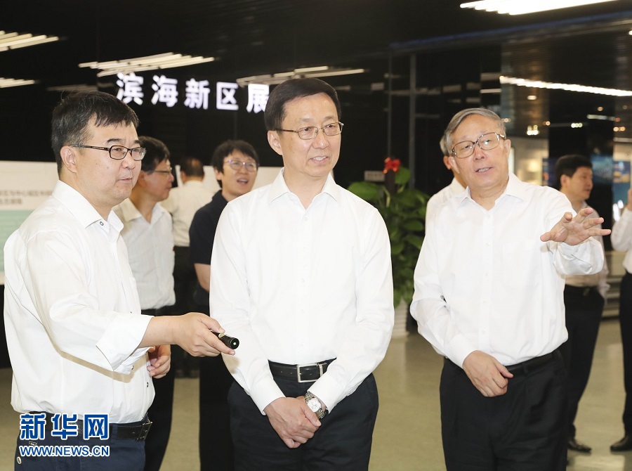 新華社天津6月20日電? 中共中央政治局常委、國務(wù)院副總理韓正6月19日在天津市調(diào)研京津冀協(xié)同發(fā)展工作。韓正前往天津市規(guī)劃展覽館,聽取天津市總體規(guī)劃及有關(guān)綠色生態(tài)屏障和濕地保護(hù)情況匯報;到科大訊飛人工智能產(chǎn)業(yè)示范基地,了解天津市加快建設(shè)全國先進(jìn)制造研發(fā)基地和發(fā)展智能產(chǎn)業(yè)情況,察看企業(yè)在機(jī)器翻譯、智慧醫(yī)療、智慧教育等領(lǐng)域的最新研發(fā)成果;到天津?yàn)I海-中關(guān)村科技園,調(diào)研園區(qū)建設(shè)和企業(yè)落戶等情況,與入駐園區(qū)的企業(yè)職工互動交流;考察天津深之藍(lán)水下新視界科技有限公司、零氪科技(天津)有限公司,了解企業(yè)自主創(chuàng)新發(fā)展情況。