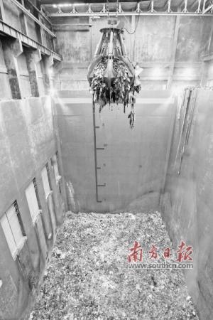 抓斗將發酵的垃圾抓起,準備送入焚燒爐。