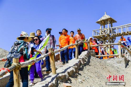 資料圖:游客在棧道上體驗旅游項目。王斌銀 攝