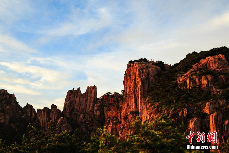 安徽黃山現云海晚霞