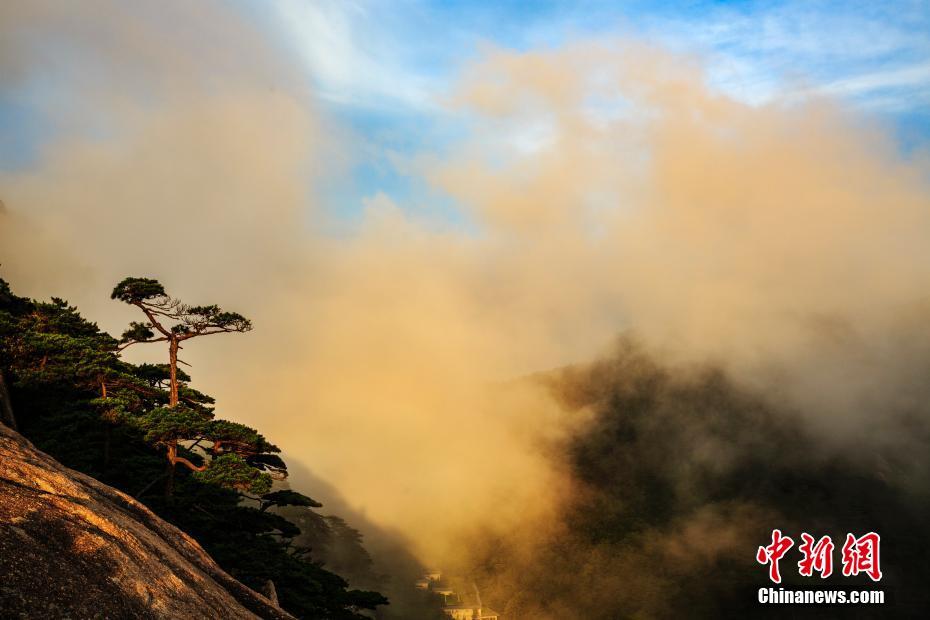 6月29日傍晚,安徽黃山風景區雨后出現云海和晚霞景觀,宛如壯麗畫卷。中新社發 方立華 攝