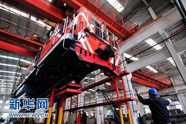 在中國鐵路西安局集團有限公司寶雞機車檢修廠聯合檢修庫內,職工們正緊鑼密鼓地進行機車落車組裝作業。