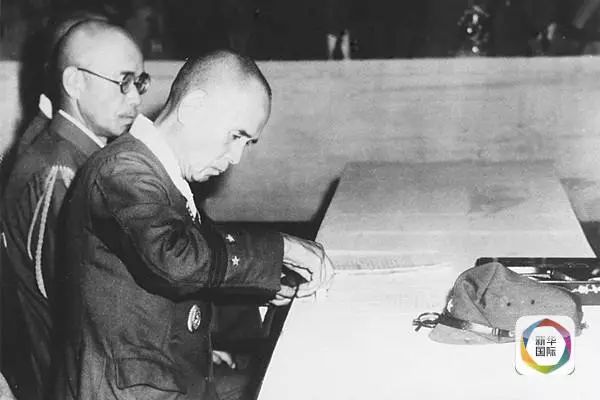 這是侵華日軍總司令岡村寧次等在南京簽蓋降書。岡村寧次還向中方交出他的隨身佩刀,以表示侵華日軍正式向中國繳械投降。