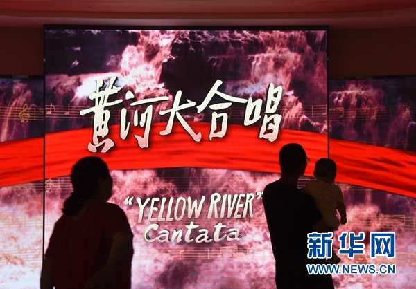 7月7日,觀眾在聆聽展覽現場播放的《黃河大合唱》。