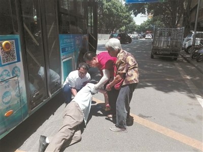 當天上午11時50分,廣州增城102路公交司機沈觀照駕駛公交車停靠增城區華峰社區公交站時,車廂中突然有乘客大喊:“快幫幫忙,有個阿伯摔倒了!” 沈師傅聽到喊聲馬上靠邊停車,只見一名約80歲阿伯摔倒在公交站站臺上,一名年紀相仿的阿婆是他的老伴,正試圖扶起他,但有些力不從心。沈師傅馬上和另外一名在場的司機一同扶起摔倒阿伯,“阿伯意識是清晰的,但損傷還是比較嚴重,臉皮破皮流血。”沈師傅說,看阿伯的表情很痛苦,隨即一邊致電120尋求幫助,一邊細心攙扶著阿伯到旁邊的公交站凳休息。據悉,暈倒的阿伯和老伴準備乘車去石灘鎮找女兒,準備上公交車時不小心摔倒了。(全媒體記者林亦旻 通訊員姚飛燕攝影報道)