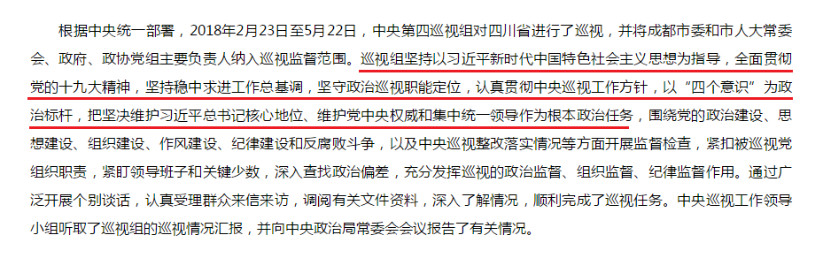 中央第四巡視組向四川省委反饋巡視情況,圖為中央紀委國家監委網站發布消息部分截圖。