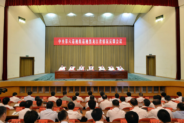 圖為中央巡視工作領導小組成員楊曉超主持召開向黑龍江省委書記張慶偉的反饋會議,出席巡視黑龍江省情況反饋會議,對抓好巡視整改工作提出要求。