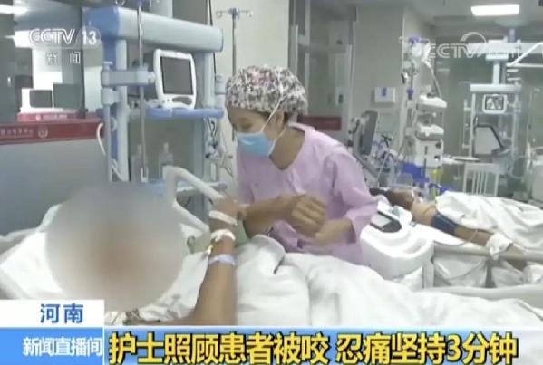 近日,在河南新鄉市醫學院第一附屬醫院的急診監護室內,護士劉珊在照料重傷病患時,手臂突然被患者咬住。因為擔心掙脫會導致病人身上的插管脫落,劉珊就一直沒有將手臂拿開。直到醫護人員給患者打了鎮靜劑后,患者才慢慢松開了牙齒,此時劉珊已經堅持了3分鐘。