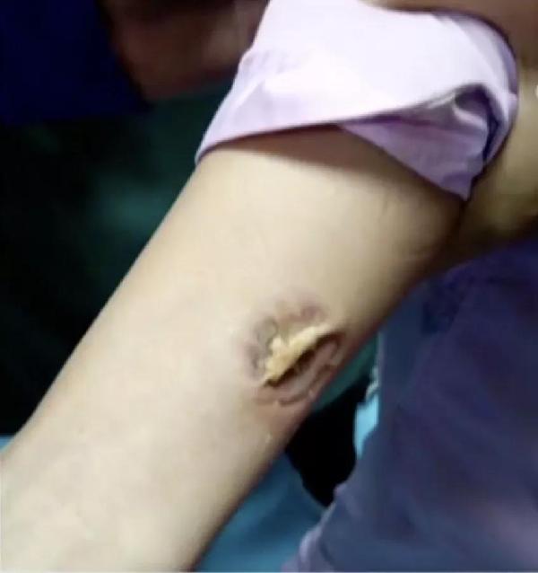 記者來到醫院看到劉珊時,事情已經過去了十天,被咬的傷口已慢慢恢復,但是依然清晰可見被咬的痕跡。而患者病情好轉,已經轉到普通病房接受進一步治療。