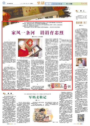 老了老了,我沒有成為當代穆桂英。但我的兒孫輩,不論在哪一個行業干,不論地處南北,不論富貴貧窮,都有一股浩然英雄氣。沒了孫子和重孫,但我又多了許許多多的“兵孫兒”。