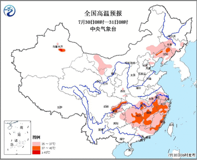 預計7月25日白天,新疆南疆盆地、內蒙古西部、甘肅西部、陜西關中及南部、華北南部、黃淮、江淮、江漢、江南、四川盆地、重慶等地最高氣溫有35~36℃。2018-07-25 07:30:06