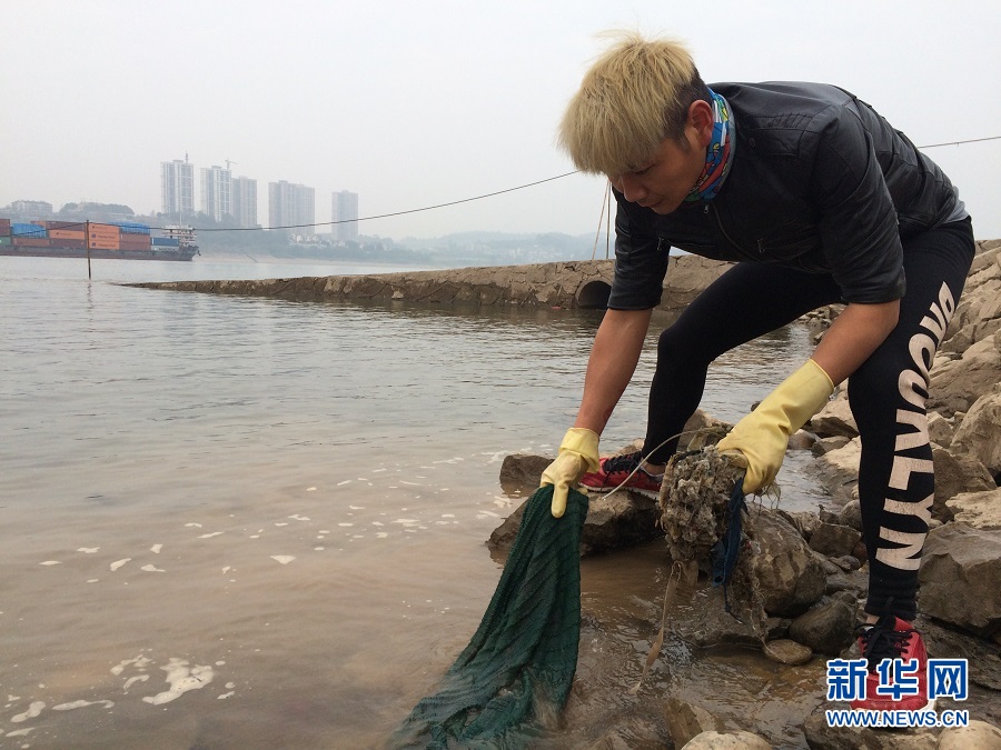 2016年12月3日,“三峽蟻工”組織發(fā)起人李年邦在江灘邊撿垃圾。2016年10月,在李年邦的發(fā)起下,“三峽蟻工”志愿者組織正式成立,300多名固定成員成為長(zhǎng)江垃圾清理的主力軍,他們以“保護(hù)長(zhǎng)江母親河”為口號(hào),每逢周末和法定節(jié)假日都會(huì)自發(fā)組織在長(zhǎng)江岸邊撿拾垃圾。 新華社記者 王自宸 攝