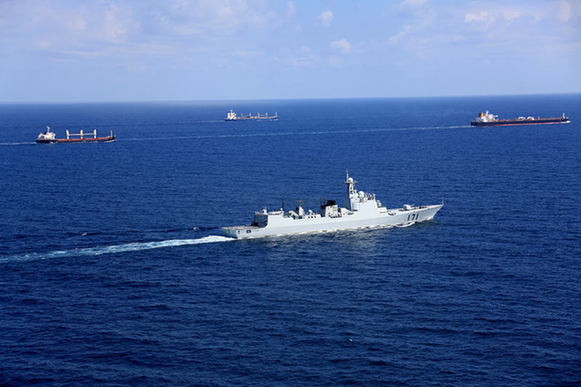 從戰艦起航的那一刻起,所有關于丈夫的消息都隨著母港內尾流的消散,消失在無盡的大洋里。也從這一天起,我每天晚上7點,都會準時坐在電視機前,收看《新聞聯播》和《軍事報道》,期盼著首批護航的消息。直到現在,我依然清晰的記得這124天里與首批護航編隊相關的消息。