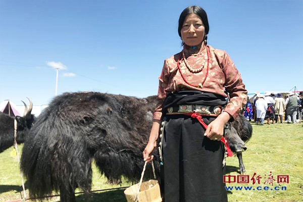 圖為澤庫縣澤曲鎮東科日村牧場正在擠牦牛奶的牧民。經濟日報-中國經濟網記者 秦爽/攝