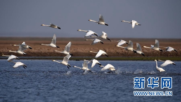 這是在東洞庭湖國家級自然保護區內拍攝到的小天鵝(2017年3月1日攝)。新華社記者 李尕 攝