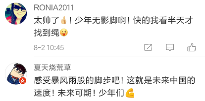 網(wǎng)友們紛紛留言:“太快了!計(jì)數(shù)都來不及!”“少年強(qiáng)則中國強(qiáng)!”