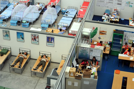 2008年8月17日,北京水立方游泳館,志愿者餐飲休息區。視覺中國供圖