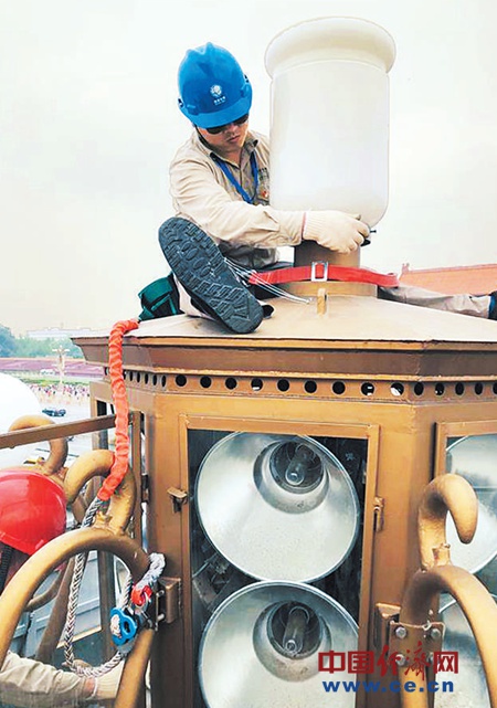 每年5月份到9月份,是北京最炎熱的季節(jié),也是華燈班最忙碌的時候。為了每年國慶節(jié)期間華燈能夠以最好的狀態(tài)向世人展示,這個北京最難熬的幾個月華燈班要對253基華燈、6000多個燈球做全方位的清洗檢修。同時,還要對華燈的光源、線路、鎮(zhèn)流器、保險等核對、記錄,為日常運(yùn)行維護(hù)工作提供詳實(shí)依據(jù)。