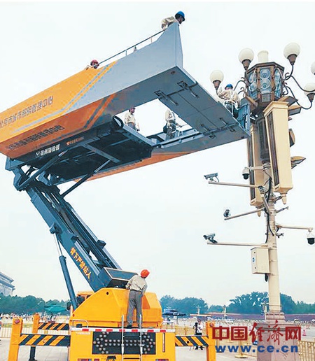 華燈車在檢修和清洗華燈。經(jīng)濟(jì)日報-中國經(jīng)濟(jì)網(wǎng)記者 常 理攝