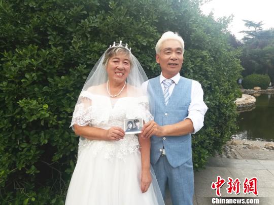來(lái)拍婚紗照的老人,還帶來(lái)了四十多年前結(jié)婚照上的照片。劉芳 攝