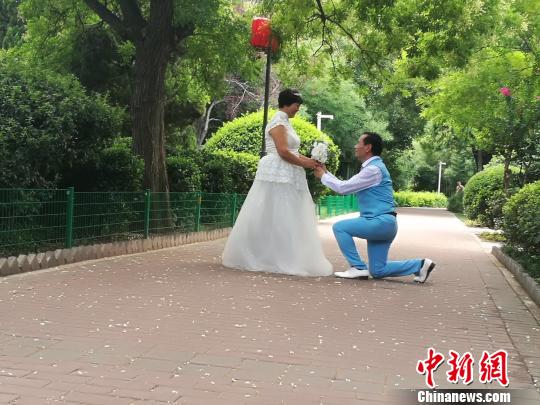 “七夕”前夕,鄭州10對(duì)老人補(bǔ)拍婚紗照,傳遞愛情正能量。劉芳 攝