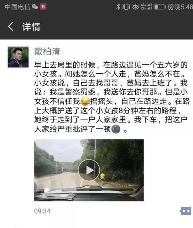 因為女孩很小,再加上路面車輛很多,戴柏清不放心,他和同事放慢車速,跟在后面默默護送。