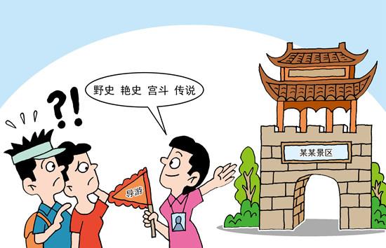 夏季是很多景點的旅游旺季。一些導游在景區進行講解時,一味迎合游客獵奇心理,隨意發揮,大談野史,而且邏輯混亂,讓游客聽得云里霧里。