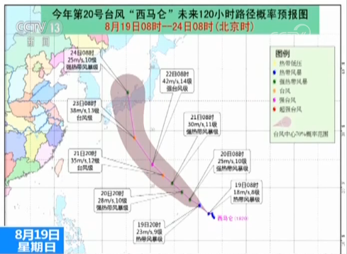 今年第20號臺風“西馬侖”也于昨晚在西北太平洋洋面生成,預計“西馬侖”將向西北方向移動,最強可達臺風級到強臺風級,未來“西馬侖”對我國海區(qū)無影響。