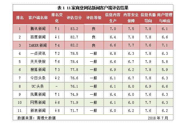 評估結果顯示,商業網站新聞客戶端生態總體尚可,內容生產日益靈動精進,網絡社交及生活服務功能邁向縱深;但內容安全方面需加強自我監管。2018-07-24 15:10:55