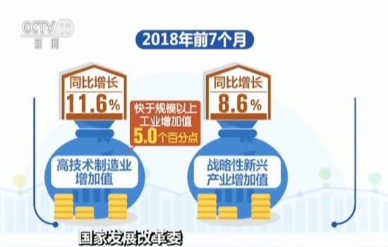 今年前7個(gè)月,高技術(shù)制造業(yè)、戰(zhàn)略性新興產(chǎn)業(yè)增加值同比分別增長(zhǎng)11.6%和8.6%,分別快于規(guī)模以上工業(yè)5.0和2.0個(gè)百分點(diǎn);高技術(shù)制造業(yè)占規(guī)模以上工業(yè)比重已經(jīng)達(dá)到13%,同比提高0.7個(gè)百分點(diǎn)。