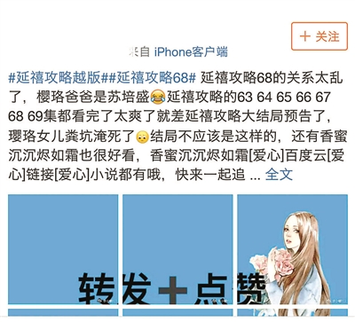 這一消息引發(fā)不少劇迷的關(guān)注,有充值網(wǎng)站會員的劇迷直言:這種現(xiàn)象破壞了公平性,損害了他們的利益。對此,《延禧攻略》所屬的東陽歡娛影視文化有限公司發(fā)布聲明稱,“任何散布、傳播、銷售影視劇《延禧攻略》尚未播出劇集內(nèi)容的行為均已構(gòu)成侵權(quán)”,要求“相關(guān)侵權(quán)行為人立即停止侵權(quán),刪除、屏蔽侵權(quán)內(nèi)容”,稱將依法追究侵權(quán)者的全部民事及刑事法律責(zé)任。北青報記者注意到,聲明發(fā)布后,網(wǎng)售《延禧攻略》未播劇集的現(xiàn)象并未減少。盡管直接搜索“劇名+資源”無法顯示相關(guān)信息,但在微博、貼吧的相關(guān)話題下,不少商家通過改換關(guān)鍵詞的方式,吸引劇迷們?nèi)ベ徺I熱播影視劇資源。
