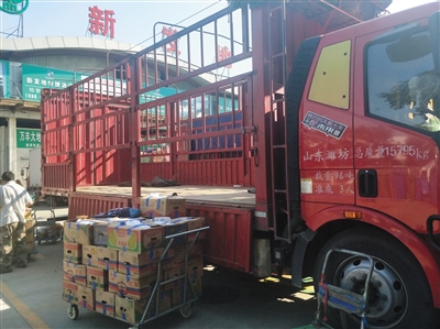 這幾天,在北京新發(fā)地市場,還出現(xiàn)了山東菜販從新發(fā)地進(jìn)菜回運(yùn)的情況。