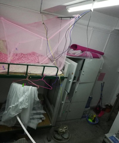 宿舍每4人一間,有獨立衛(wèi)生間,但衛(wèi)生間沒有窗戶和排氣扇,常有嚴(yán)重異味,還時常有小蟲子出沒。