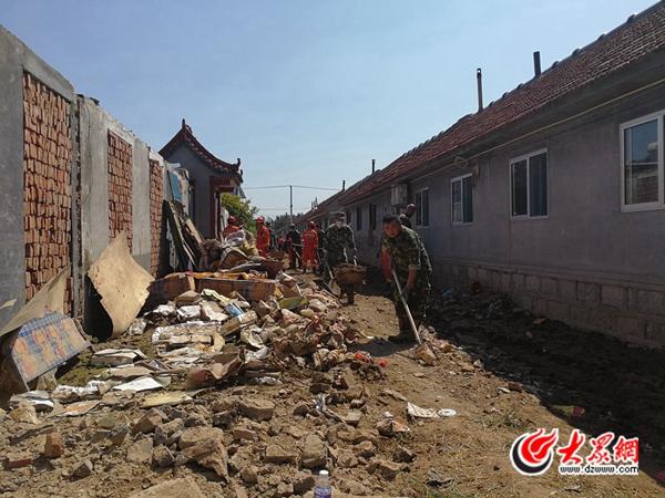 直擊壽光救援:和暴雨搶時間!消防官兵進村清淤泥排積水