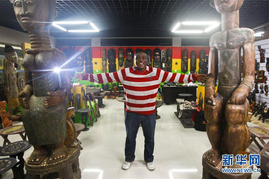 2013年3月20日,加納商人弗蘭克在浙江義烏國際商貿城自己的店鋪里留影。 新華社記者 崔新鈺 攝