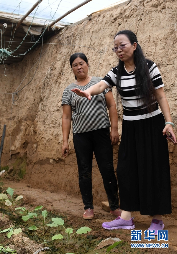 8月30日,中國農(nóng)業(yè)大學(xué)教授高紅麗(右)在紀(jì)臺(tái)鎮(zhèn)前老莊村指導(dǎo)種植戶趙秀蓮做好田間管理。 新華社記者 朱崢 攝