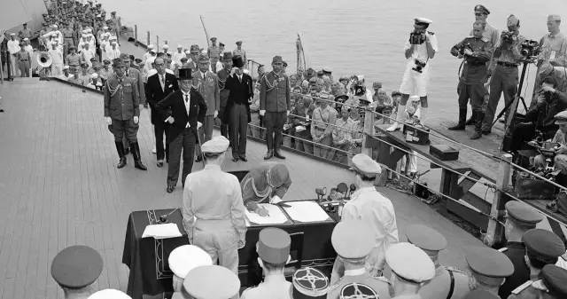 日方代表在投降書上簽字確認