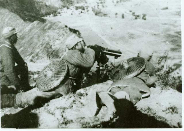 八路軍115師戰士在平型關公路兩側伏擊日軍