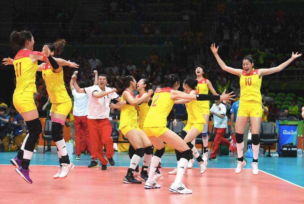 在2016年里約奧運會女子排球決賽中,中國隊以3比1戰勝塞爾維亞隊,奪得冠軍。新華社記者 李尕 攝
