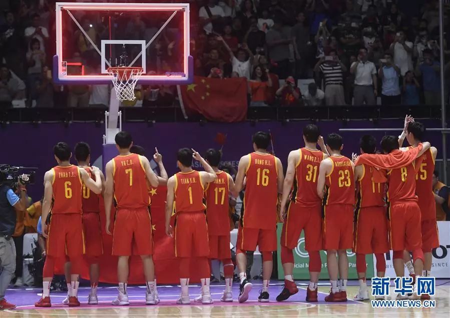 在第18屆亞運會男子籃球決賽中,中國隊以84比72戰勝伊朗隊,奪得冠軍。 新華社記者 黃宗治 攝