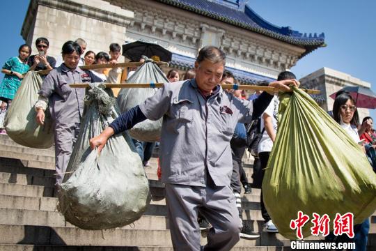 “十一”黃金周,廣大市民游客紛紛開啟休假模式,而環衛工人依然堅守崗位。在南京中山陵的藍瓦白墻下,流動著這樣一群身影,他們穿著藏藍色工作服,手拿保潔工具,彎著腰,低著頭工作著,全心全力地保障景區的衛生環境。徐道海、陳紅霞就是其中的兩位,據了解,他們在鐘山風景區服務了近20年,每天的工作就是將祭堂外的垃圾清運至山下的垃圾中轉站去。他們每天在392級臺階上往返15趟。一位年輕游客說,“這兩位師傅真是了不起,看到他們,我們哪好意思再亂扔垃圾呀!”徐道海師傅憨憨的笑著說:“我在景區工作20年了,把景區當做我的家,不管再苦再累,我也要將景區打掃干凈,這不僅是給游客留下一個好印象,也是對先人的敬仰和尊重。”
