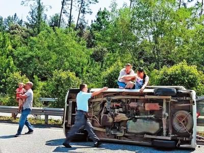 “當時車子冒著煙,車身很燙,車內傳出老幼的哭喊聲。”下午3點40分左右,記者電話聯系到了還在返回成都途中的李敏華。“我們8個人2輛車,看到面包車側翻,趕緊把車靠下來圍了上去,幫著把人往出背,路過群眾紛紛參與到了救援當中。”