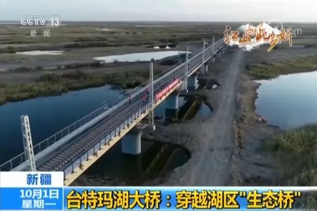 格庫(kù)鐵路臺(tái)特瑪湖特大橋工程位于世界第二大沙漠——塔克拉瑪干沙漠的腹地,設(shè)計(jì)長(zhǎng)度24.5公里,是新疆庫(kù)爾勒到青海格爾木段鐵路的重要組成部分。大橋由中鐵一局于2014年開(kāi)工建設(shè),目前已完成鐵路橋軌道鋪設(shè)。