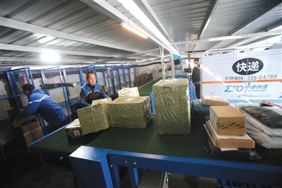 昨日,在建國門街道貢院東街,一處1000余平方米的拆遷滯留地“變身”快遞集中分揀點。東城區建國門街道城管科副科長張晶告訴記者,這是全市首個由政府主導建立的快遞集中分揀點。