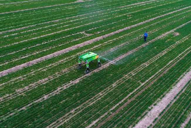 植保機(jī)器人在山東省鄒平縣明集鎮(zhèn)的田地里作業(yè),提高了生產(chǎn)效率。新華社記者 郭緒雷攝