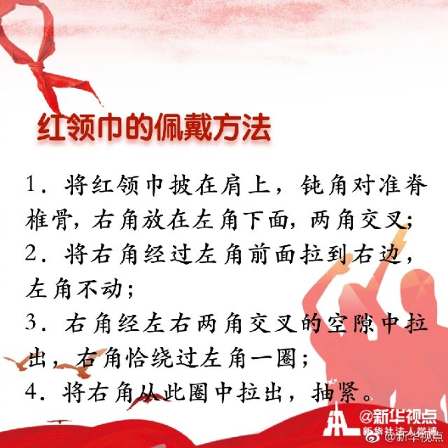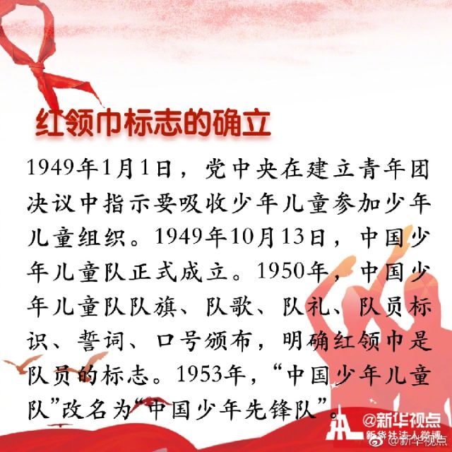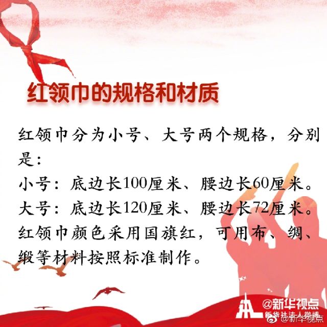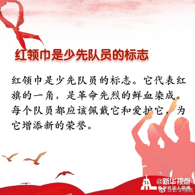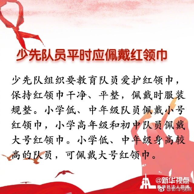 “我們是共產(chǎn)主義接班人,繼承革命先輩的光榮傳統(tǒng),愛(ài)祖國(guó),愛(ài)人民,鮮艷的紅領(lǐng)巾飄揚(yáng)在前胸。”紅領(lǐng)巾是紅旗的一角,是少年先鋒隊(duì)的象征與標(biāo)志。你是幾歲佩戴上的紅領(lǐng)巾?你對(duì)曾經(jīng)朝夕相伴的紅領(lǐng)巾了解多少?戳圖看詳解↓↓