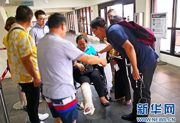 在機場等候的中國乘客秩序井然,許多人舉著國旗合影,非常興奮。一位在塞班開店的王女士腳部骨折,因當地醫療條件有限,她向領館尋求幫助,經領館協調,也順利搭上川航飛機回國。