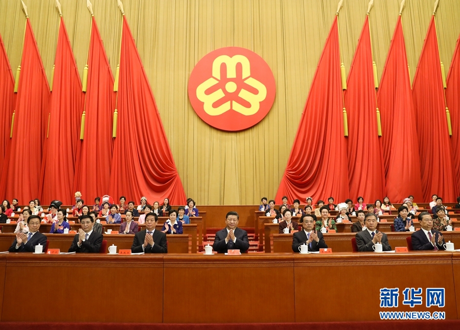 10月30日,中國婦女第十二次全國代表大會在北京人民大會堂開幕。習(xí)近平、李克強、栗戰(zhàn)書、汪洋、王滬寧、趙樂際、韓正等在主席臺就座,祝賀大會召開。 新華社記者 鞠鵬 攝