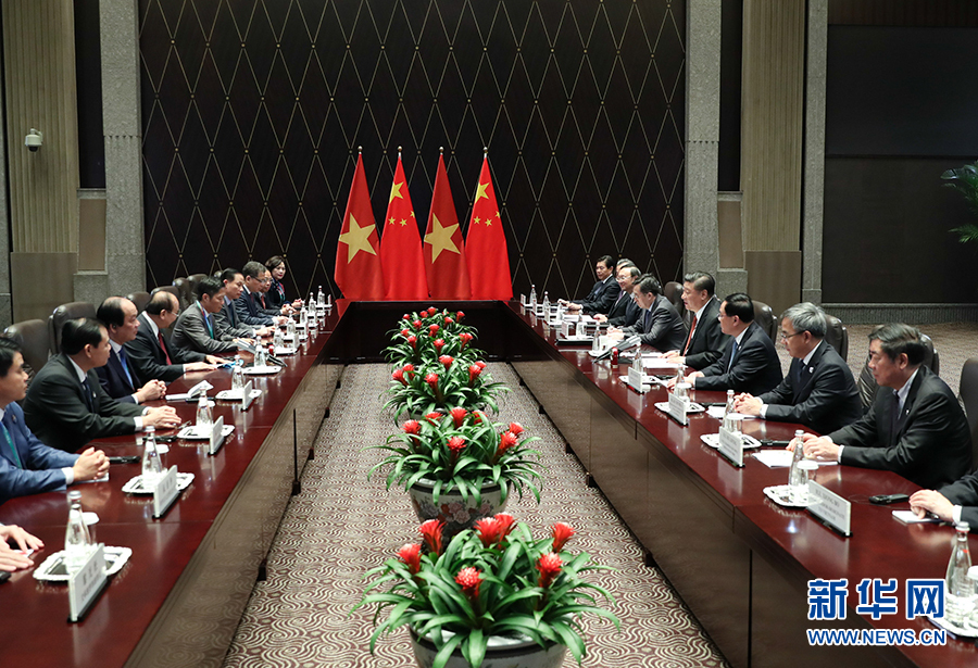 習近平指出,今年是中越建立全面戰略合作伙伴關系10周年。中越兩國均處在改革發展的關鍵階段。雙方要從兩國人民根本利益出發,繼往開來,乘勢而上,不斷開創雙邊關系新局面,在前進道路上共謀發展。