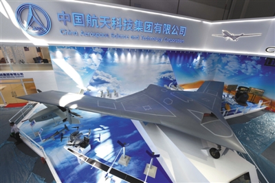 在中國航天科技集團有限公司展區,彩虹-7型(CH-7)高空長航時隱身無人機系統昨天也首次在航展面世。